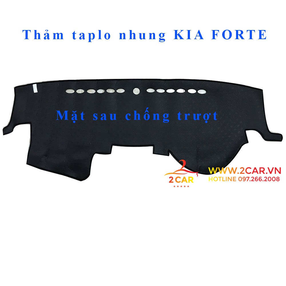 Thảm taplo nhung KIA FORTE là sản phẩm thiết yếu trên mỗi chiếc xe ô tô với các đặc điểm và đặc tính sau như :– Chất liệu: Thảm taplo nhung KIA FORTE làm bằng vải nhung cao cấp có về mặt mềm mịn, có thể chống chịu nhiệt độ cao, hấp thụ nhiệt độ tốt, không thấm nước rất dễ dàng vệ sinh