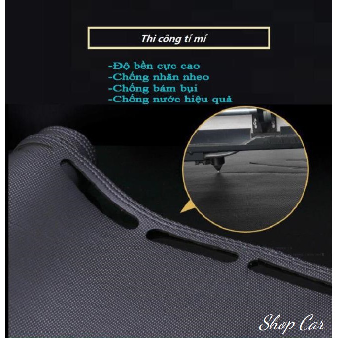 - Chất liệu da vân carbon nổi trên bề mặt có độ bền cực cao, chống nhăn nheo, chống bám bụi, chống nước hiệu quả, mẫu da vân carbon là một trong những chất liệu da cao cấp nhất trên thị trường để may phụ kiện nội thất cho xế yêu, rất thân thiện với môi trường và an toàn khi sử dụng. Tại Shop Car, mẫu da carbon này được may làm thảm lót sàn, lót cốp và thảm chống nắng taplo.