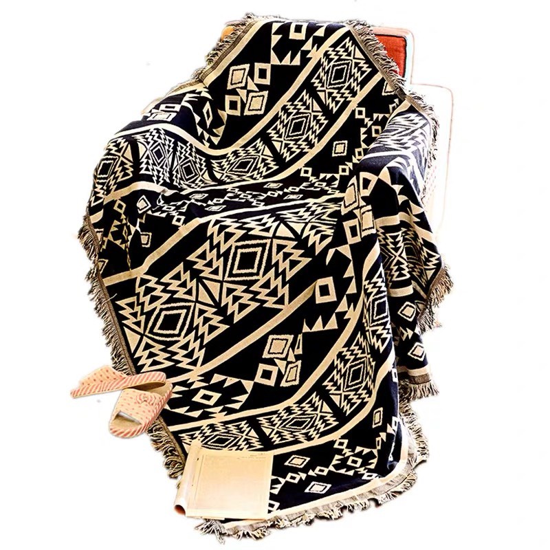 Thảm Thổ Cẩm Bohemian180cm x 130cm Họa Tiết Đen Trắng