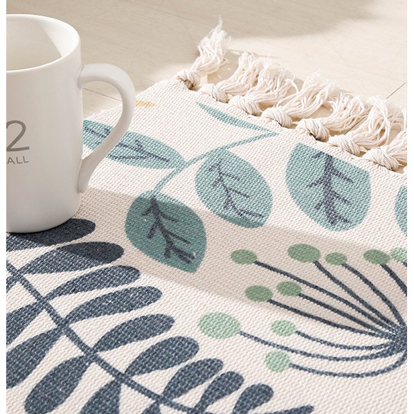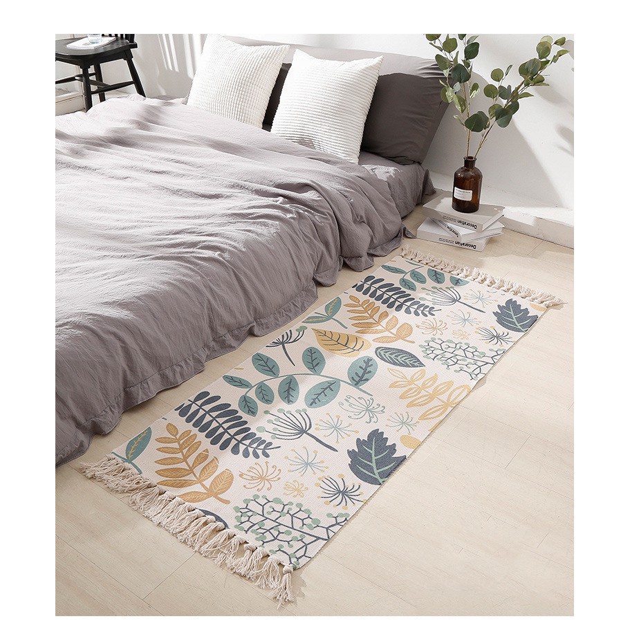 Thảm thổ cẩm trang trí nhà cửa được dệt hoàn toàn thủ công bằng sợi vải cotton tự nhiên, công nghệ nhuộm hoàn toàn bằng chất nhuộm nguồn gốc thực vật, đảm bảo vệ sinh và an toàn trong sử dụngThông số kỹ thuật của thảm:
