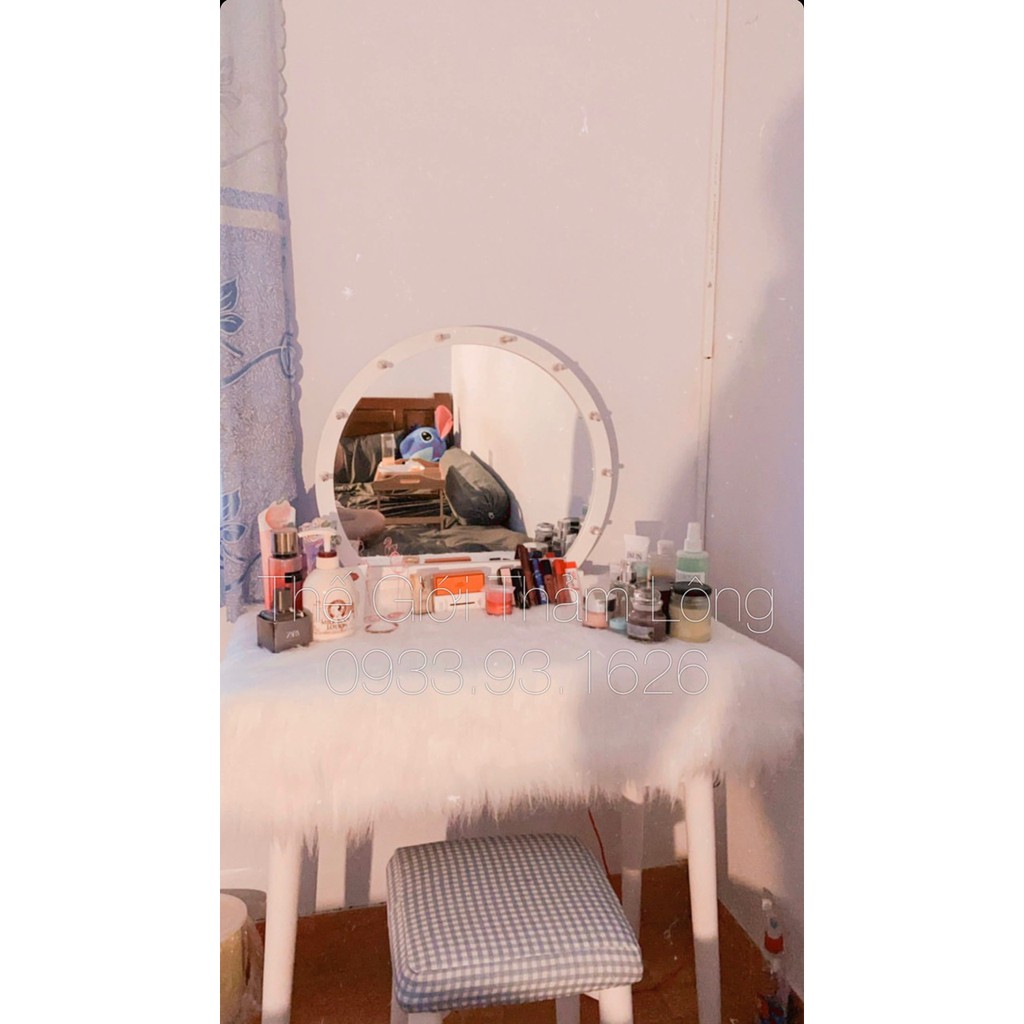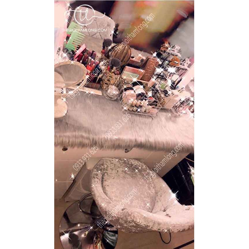 Bàn trang điểm lung linh hơn hẳn khi được trang trí bởi tấm thảm lông dài xinh xắn - sang trọng. Sợi lông dài mềm mịn , tông thêm độ lộng lẫy cho góc nhỏ xinh của chị em nhà mình.
