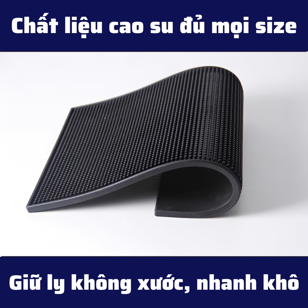 + Thảm Lót Cao Su được làm bằng chất liệu cao su dẻo và dày nên có độ bám vào mặt sàn cao, chống trượt hiệu quả. Mặt trên của tấm thảm lót được thiết kế với nhiều hạt tròn nhỏ giúp chống trơn trượt khi úp ly, đồng thời các khe nhỏ trên bề mặt sẽ giữ nước chảy xuống giúp đảm bảo khu vực quầy bar luôn được sạch sẽ.