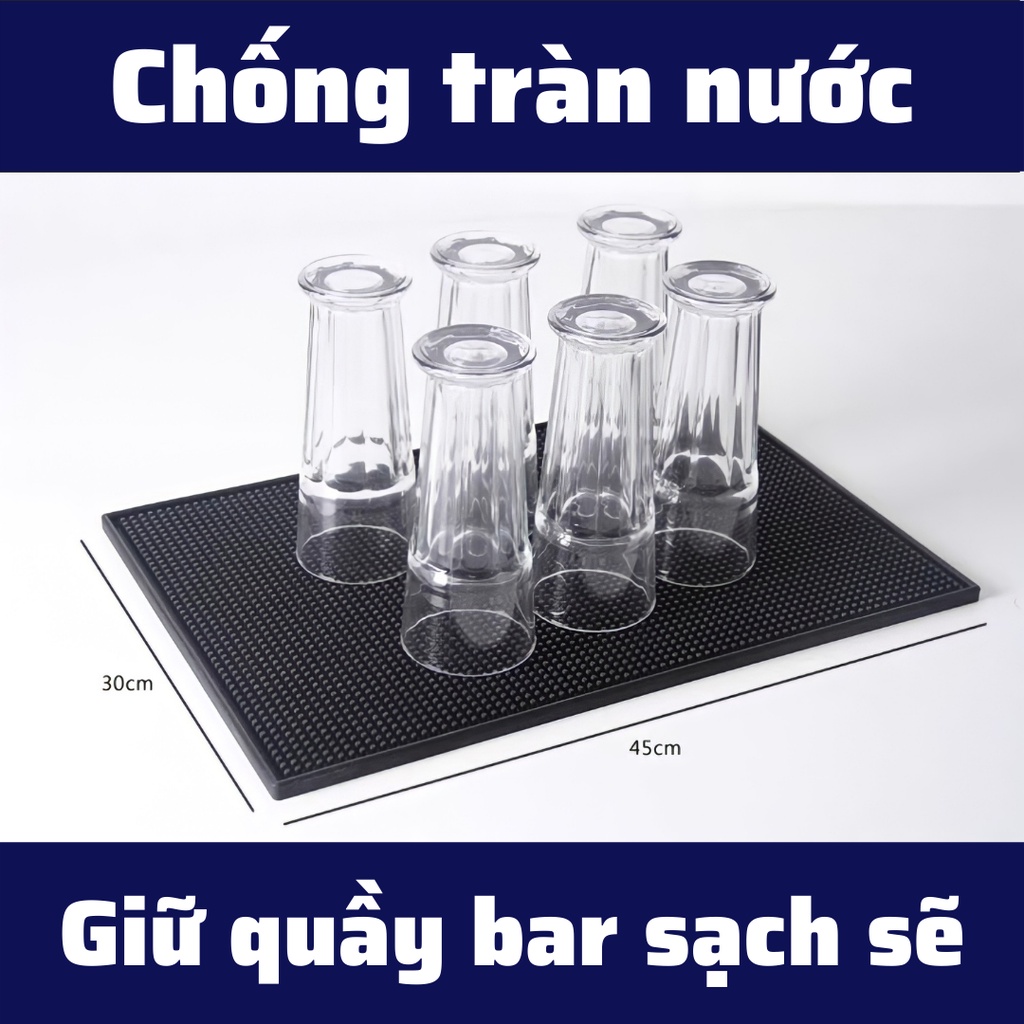 + Thảm cao su quầy Bar là dụng cụ dùng để lót ly và các dụng cụ trong pha chế tại các quầy bar, quầy pha chế, chống tràn nước trên quầy, giữ các ly được sạch sẽ và thông thoáng, tiết kiệm không gian quầy bar.