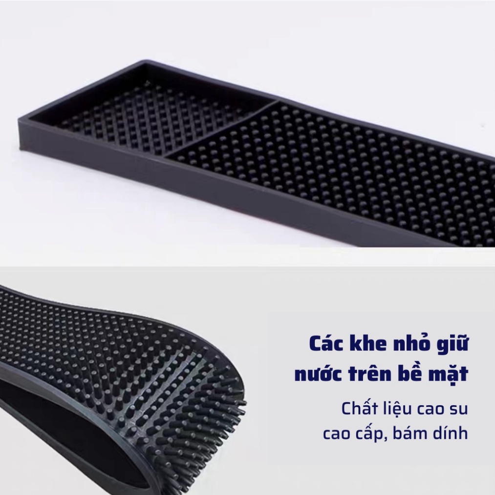 + Thảm Lót Cao Su được làm bằng chất liệu cao su dẻo và dày nên có độ bám vào mặt sàn cao, chống trượt hiệu quả. Mặt trên của tấm thảm lót được thiết kế với nhiều hạt tròn nhỏ giúp chống trơn trượt khi úp ly, đồng thời các khe nhỏ trên bề mặt sẽ giữ nước chảy xuống giúp đảm bảo khu vực quầy bar luôn được sạch sẽ.