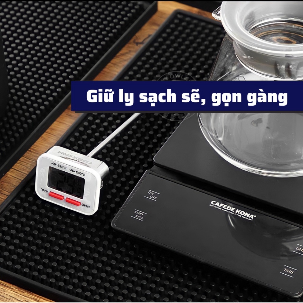 + Thảm cao su quầy Bar là dụng cụ dùng để lót ly và các dụng cụ trong pha chế tại các quầy bar, quầy pha chế, chống tràn nước trên quầy, giữ các ly được sạch sẽ và thông thoáng, tiết kiệm không gian quầy bar.