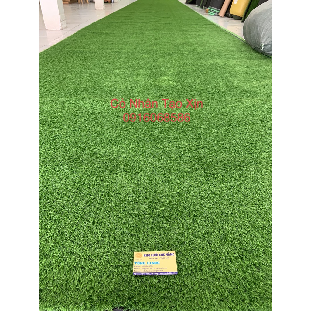 Tấm cỏ nhân tạo có bề rộng 2m, tuỳ theo bạn cần dùng bao nhiêu chiều dài, bạn đặt số lượng tương ứng.