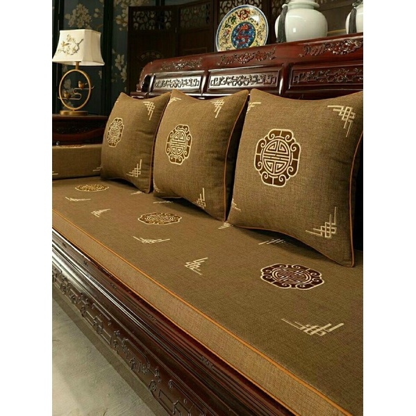 vỏ ghế được may bằng vải thô cottong thêu hình đơn giản mà sang trọng