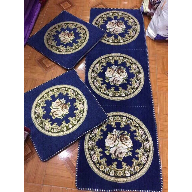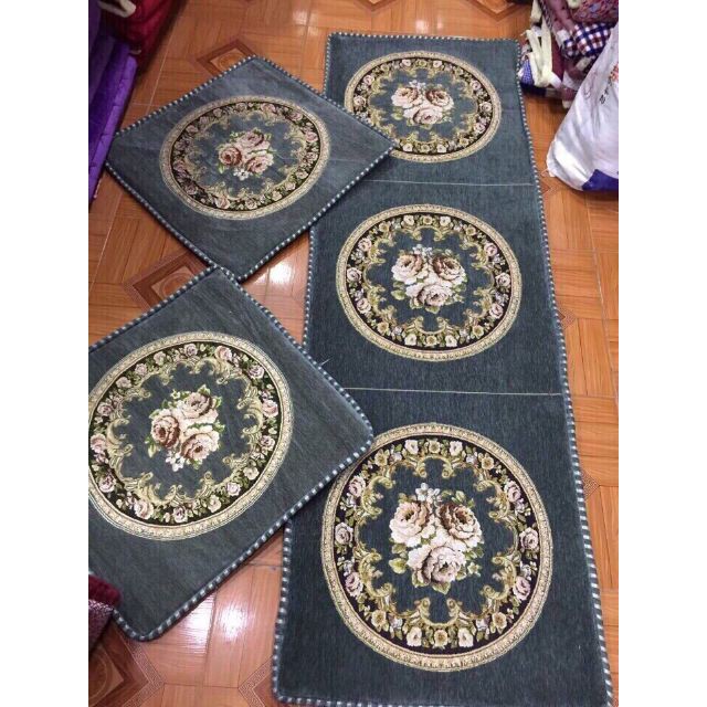 Thảm trải ghế tây âu, đệm ghế, ghế trải trên ghế gỗSét bao gồm 3 món : 1 thảm dài kt gồm có m7, m8, 2m, x55