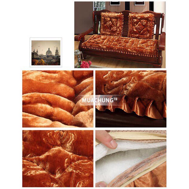 Bộ thảm trải ghế nỉ nhung đệm ngồi lót êm ấm viền bèo sang trọng (có khóa kéo tháo ra giặt)