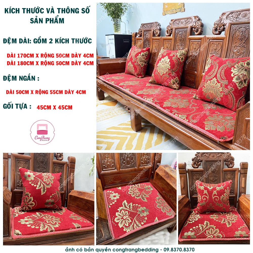 Nhà cửa & Đời sống > Nội thất > Đệm ngồi || Thảm trải ghế phòng khách, trọn bộ đệm ghế sofa, thảm trải ghế gỗ, gối tựa thêu vi tính vải gấm cao cấpCòn hàng