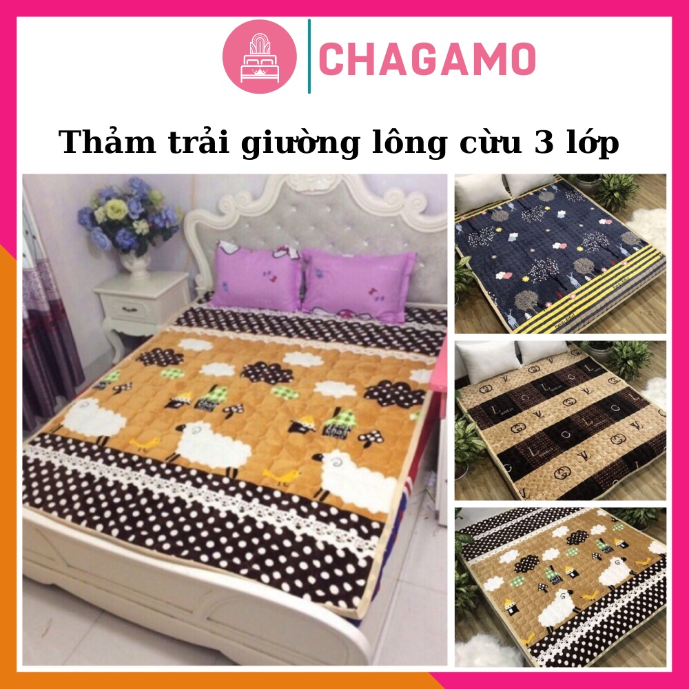 Nhà cửa & Đời sống > Chăn ga gối nệm > Tấm bảo vệ nệm, topper || Thảm trải giường lông cừu cao cấp 3 lớp siêu ấm mềm mịnCòn hàng