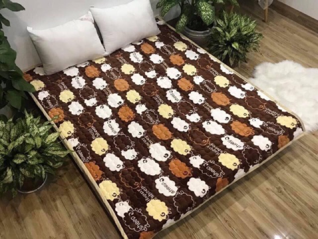 🔲 đặc điểm lông cừu rất #ấm và #mềm , được trần bông dầy dặn, mặt dưới có lớp chống trơn trượt , 4 góc được đính chun để cố định ga .