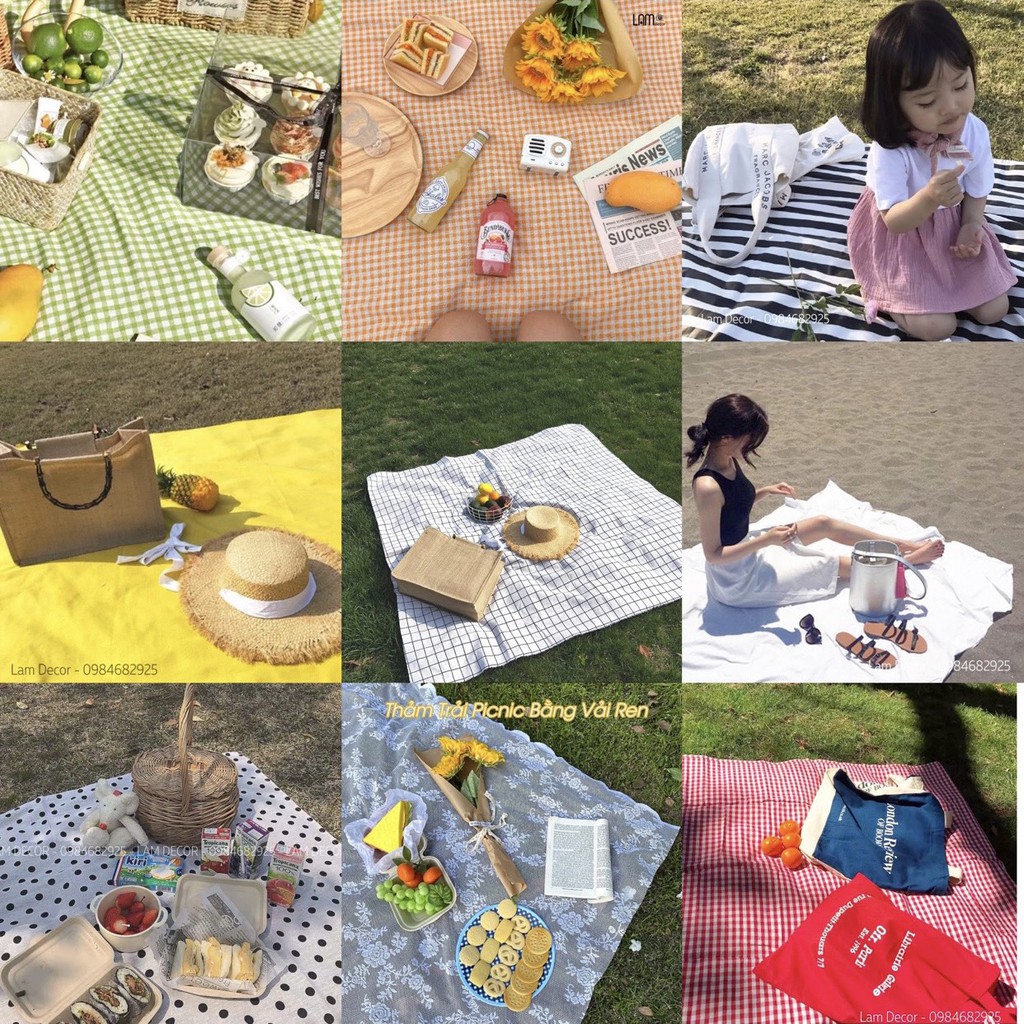 Những mẫu phụ kiện chụp ảnh Thảm trải picnic bằng vải canvas họa tiết nền nã nhà Lam Decor đã và đang có mặt trong nhiều khung hình picnic trải dài khắp Việt Nam.