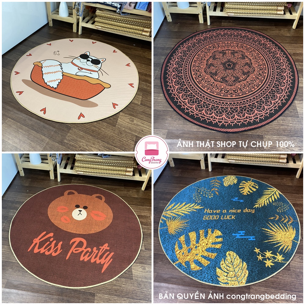 Thảm Trải Sàn Bali hình tròn (1m x 1m) Trải Sàn Trang Trí Cao Cấp - ( Mặt Sau đế cao su Chống Trơn Trượt )