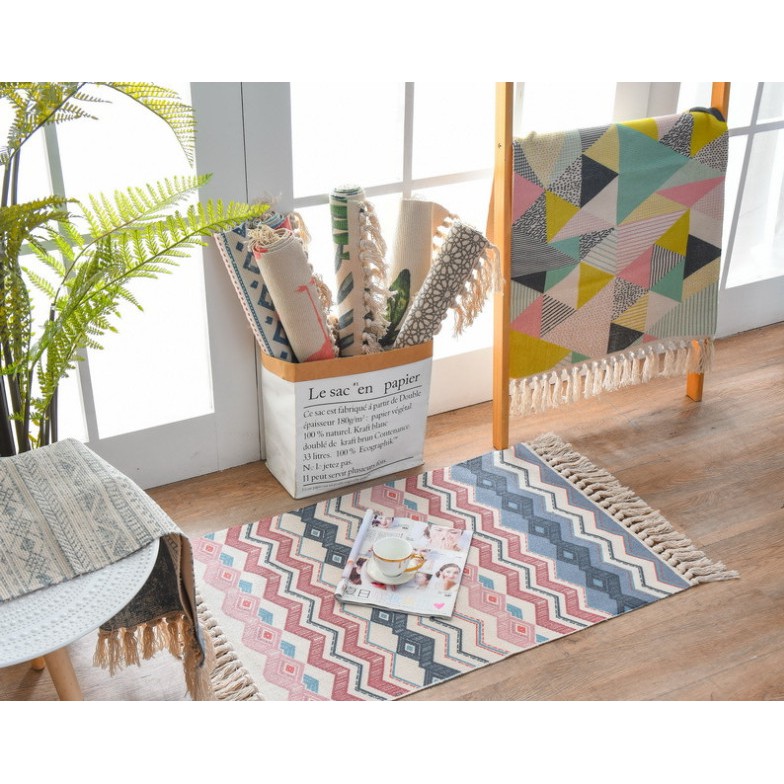 ✔ Thảm được dệt bằng vải cotton thấm hút cực tốt, đem đến sự gọn gàng cho căn phòng của bạn