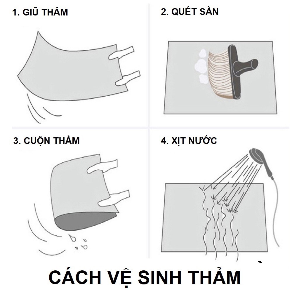 -Khu vực phù hợp: 1) Chùi chân cửa phòng; 2) Phòng khách-trải đệm ghế; 3) Phòng ngủ-Đầu giường...