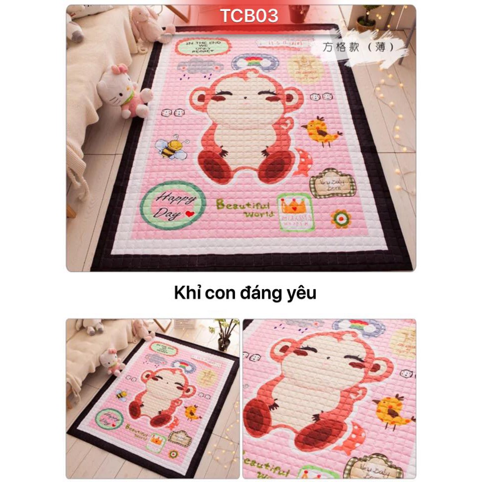 Thảm vải với nhiều hình thù ngộ nghĩnh đáng yêu cho bé trai và gái. Chất liệu vải cotton mềm mại, lót bông dày 1,5cm giúp trẻ dễ dàng lăn lê bò toài.