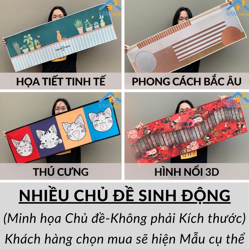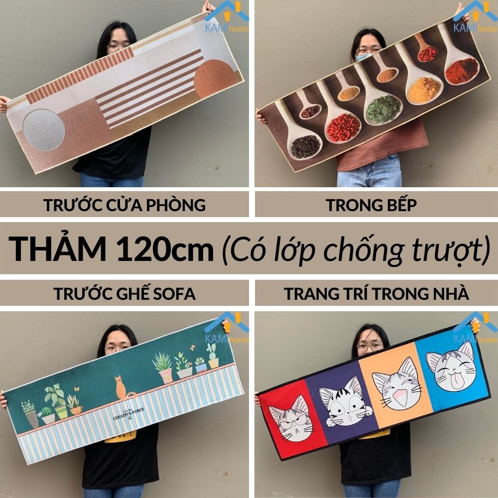Thảm trải sàn dưới ghế sofa và giường ngủ gồm 1 chiếc 120*40cm loại dày, đẹp, được chọn nhiều mẫu theo nhu cầu, đặc biệt lớp chống trơn trượt.Thảm trải sàn chùi chân được chia thành nhiều loại với các mục đích sử dụng khác nhau: Thảm chùi chân chống bụi bẩn khô, Thảm chùi chân chống thấm nước, Thảm chống trượt (Nhà tắm), Thảm chống chất bẩn khó tẩy ra sàn nhà (Bếp), Thảm ngồi (Ghế, Sàn nhà, Giường…), Thảm trang trí phòng, chụp ảnh…