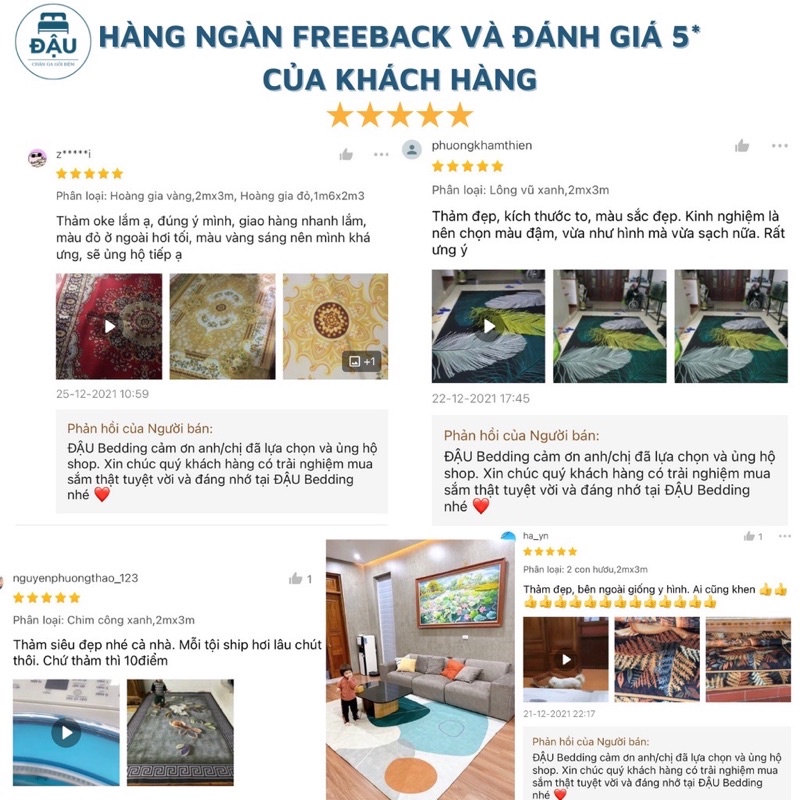 👍🏻Kích thước tiêu chuẩn (Rộng x Dài): 2mx3m và 1m6x2m3