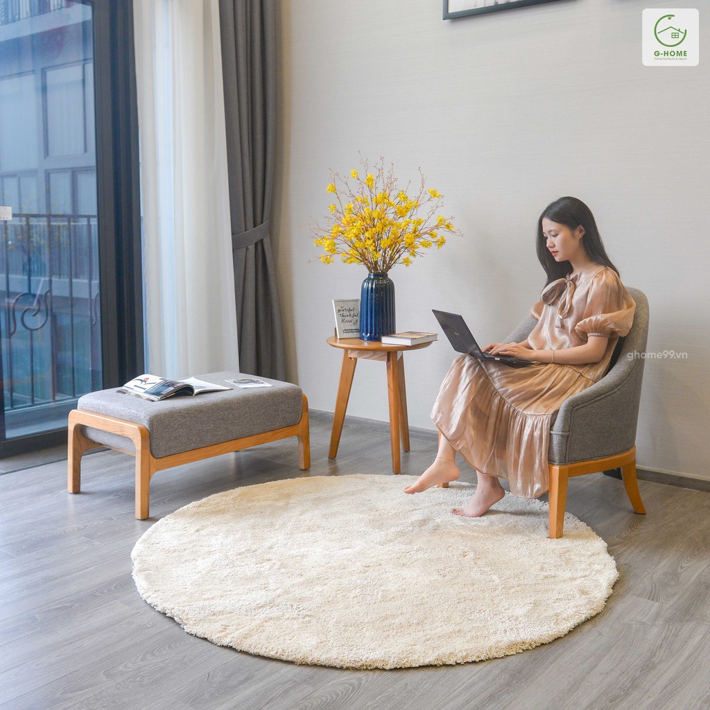 Sản phẩm thảm trải sàn phòng khách Ghome TSL02 được dệt từ sợi lông cừu mềm mịn, màu sắc trung tính, dễ phối với mọi không gian nhà. Với chất liệu lông cừu, kiểu dáng thảm tròn, thảm TSL02 không bị xù hay rụng lông, vừa tạo nên sự sang trọng cho không gian nhà vừa bảo vệ, giữ ấm chân cho cả nhà.Thông tin sản phẩm thảm trải sàn phòng khách: