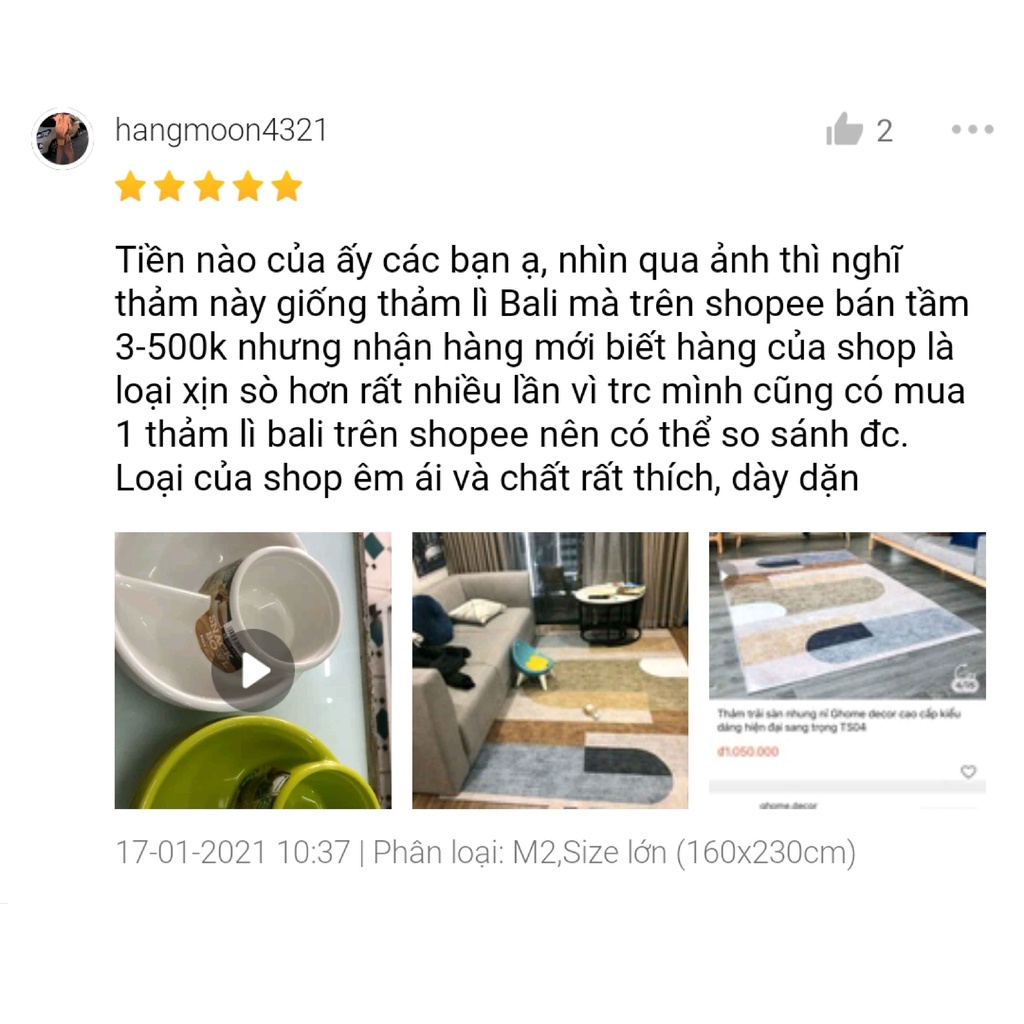 Nhà cửa & Đời sống > Trang trí nhà cửa > Thảm trải sàn || Thảm trải sàn phòng khách Ghome chất nhung nỉ cao cấp hình chữ nhật hiện đại sang trọng TS04Còn hàng