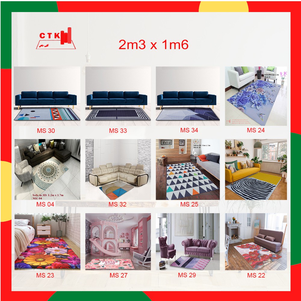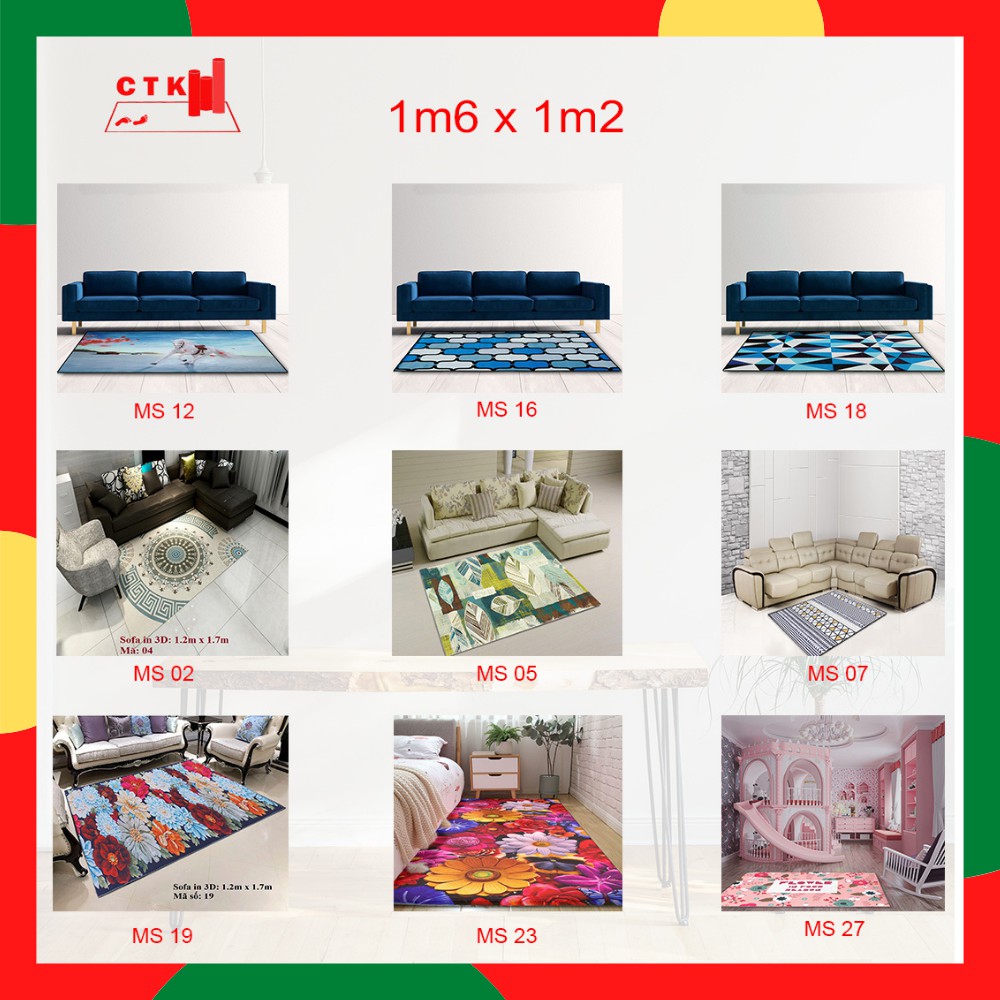 Giới thiệu Thảm trải sàn phòng khách, thảm trải sàn phòng ngủ trang trí cao cấp 230x 160cm, 160x 120cm
