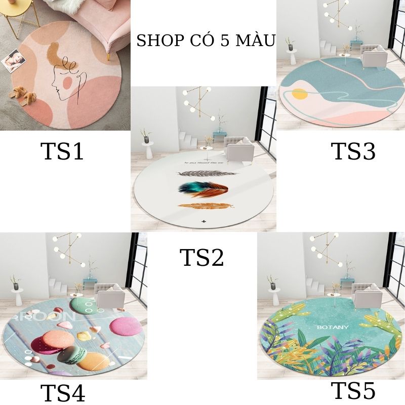 Thảm trải sàn phòng ngủ phòng khách trang trí bali tròn 60 * 60 cm chống trơn thấm hút nướcThảm trải sàn là loại thảm được chế tác từ các vật liệu chất liệu khác nhau dùng để trải sàn tạo hiệu ứng không gian trang trí với các phong cách khác nhau giúp cho người dùng được cảm giác thoải mái, ấm cúng và thể hiển tính cách và cá tính của gia chủ. Có 5 màu thảm trải sản khác nhau cho bạn lựa chọn.