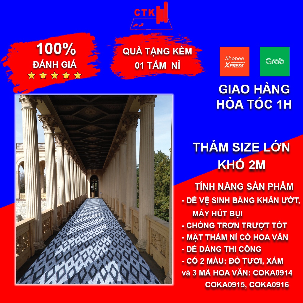 Màu sắc: Thảm có 2 màu: xám và đỏ tươi