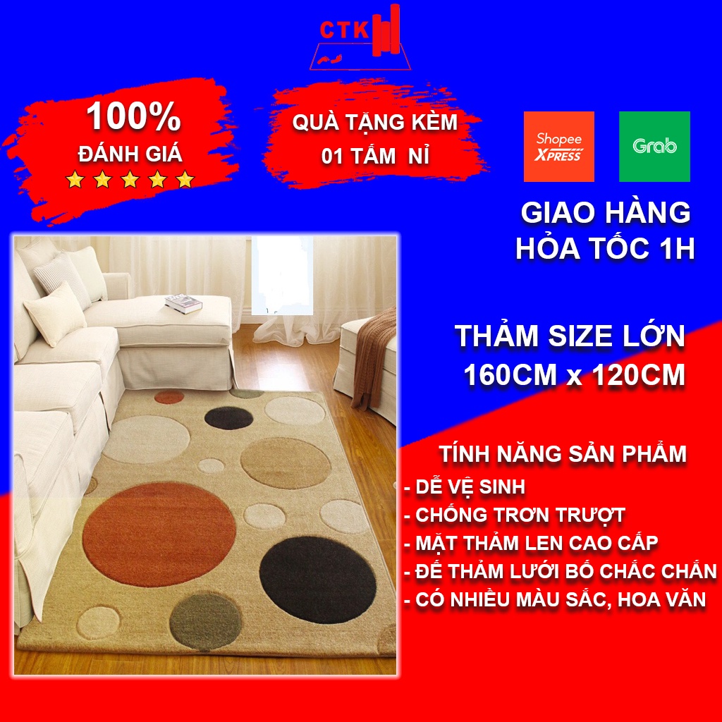 Thảm trải sàn phòng khách, thảm trải sàn phòng ngủ trang trí len cao cấp TNK 160x 120cm✨✨✨ Cao Trường Kha đảm bảo: ✨✨✨