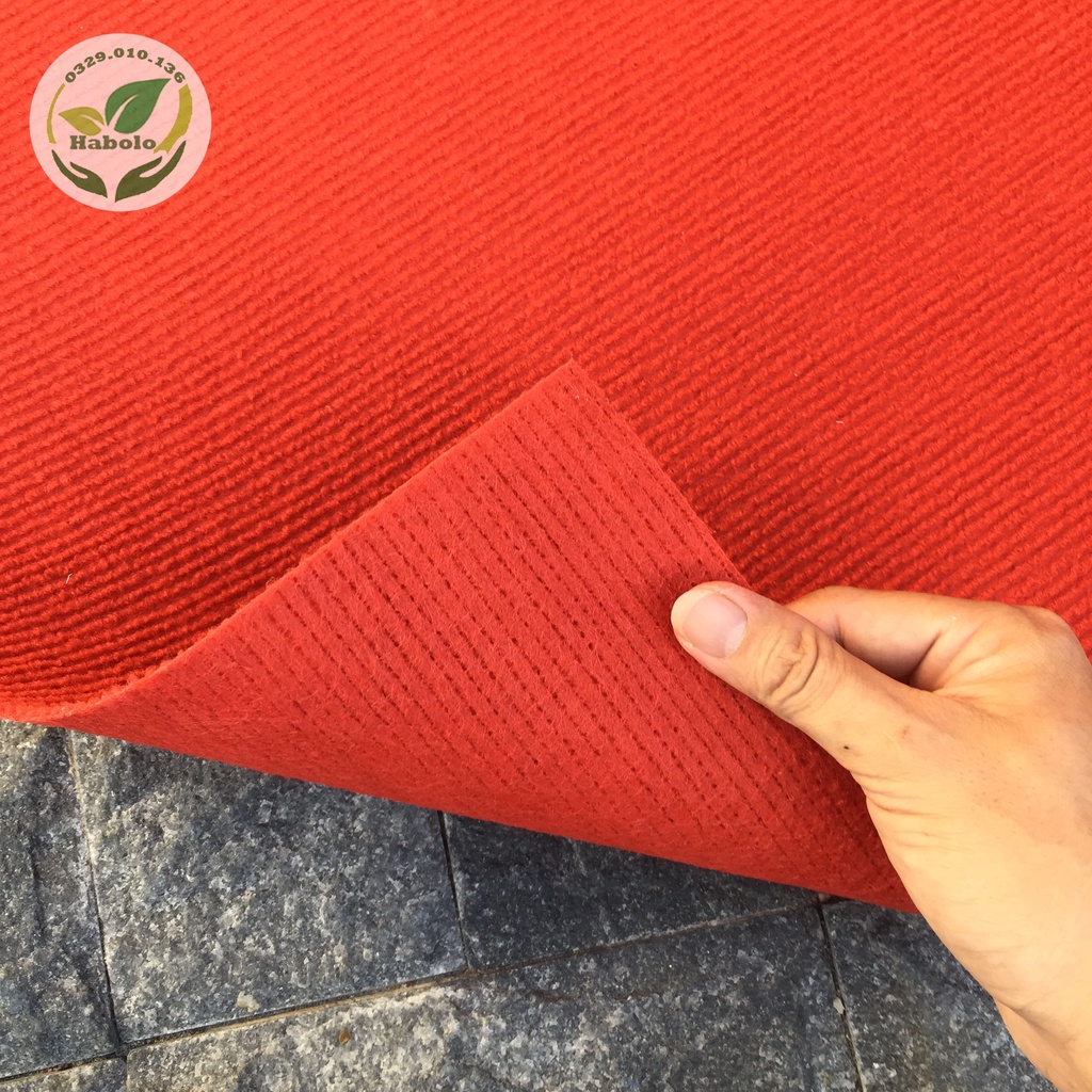 Thảm nỉ trải sàn đỏ tươi có tính chất dai, bền, dày 3mm , chắc và chịu lực tốt.