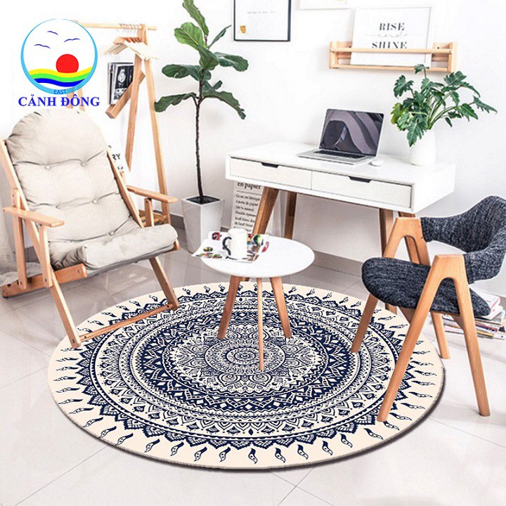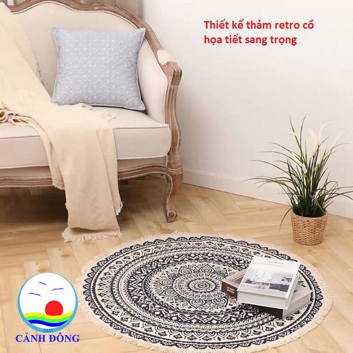 • Thảm trải sàn tròn hoa mandala với những họa tiết cổ điển là một trong những món đồ không thể thiếu khi trang trí ngôi nhà mang phong cách retro. Không những có tác dụng làm đẹp cho không gian mà còn có nhiều ứng dụng thiết thực: che đi những khuyết điểm của mặt sàn; tạo cảm giác sạch sẽ, êm ái, ấm cúng cho không gian; giảm tiếng ồn, chống trượt, cách nhiệt tốt, dễ dàng thay đổi phong cách… Phù hợp để trang trí ở phòng khách, phòng ngủ, quán cà phê, studio, homestay,…