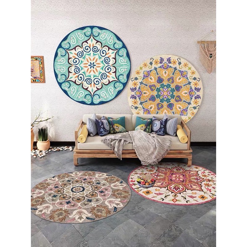Thảm trải sàn tròn thổ cẩm vintage treo tường trải sàn trang trí phòng khách phòng ngủ và nơi làm việc sang trọng