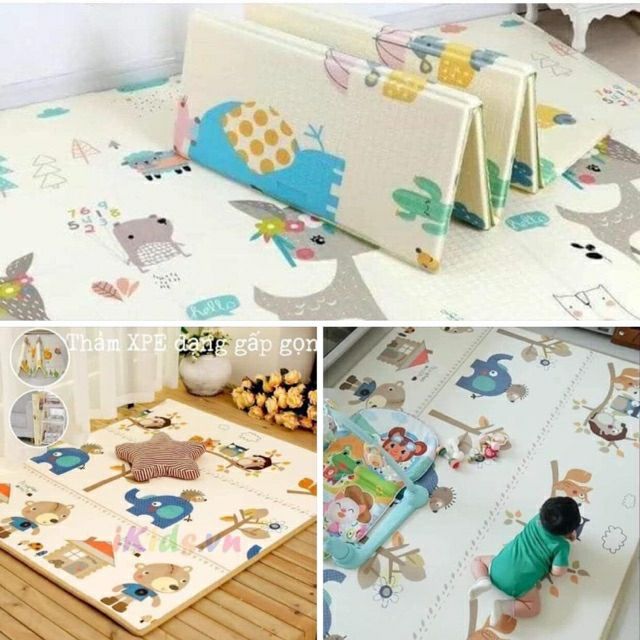 Giới thiệu Thảm trải sàn xốp XPE 2 mặt phủ Silicone Hàn Quốc mẫu đẹp chống thấm tuyệt đối, chống ngã, cho bé tập bò kèm túi 1m8- 2m