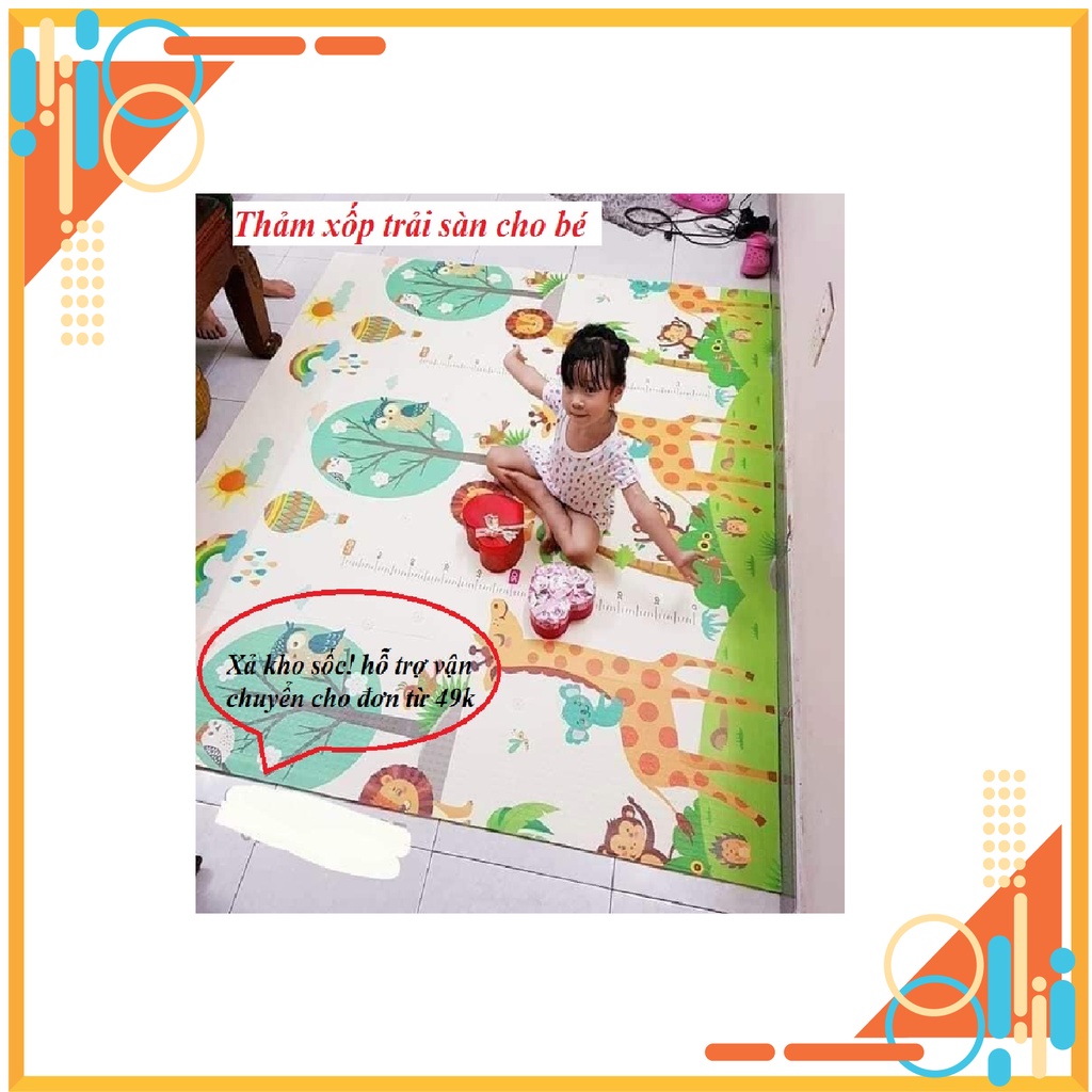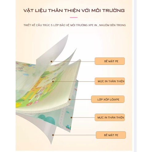 Thảm trải sàn xốp XPE 2 mặt phủ Silicone Hàn Quốc mẫu đẹp chống thấm tuyệt đối, chống ngã, cho bé tập bò kèm túi 1m8- 2m