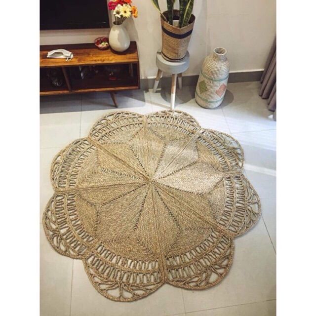 Thảm cói hình hoa đẹp mắtThảm cói đường kính 1m2