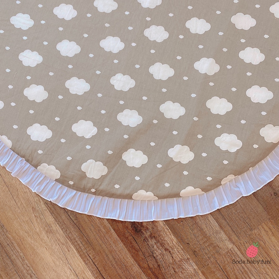 Giới thiệu .. Thảm trang trí phòng, tập bò cho bé hoạ tiết đám mây xám dễ thương viền bèo 100cm mã 001