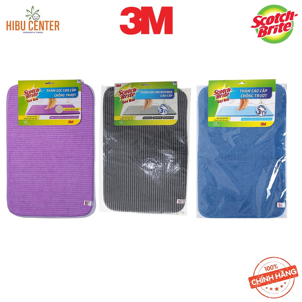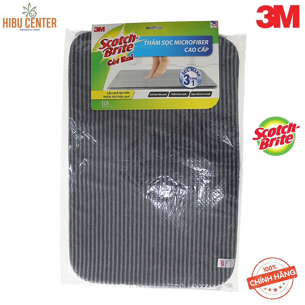 Thảm Trơn/ Sọc Microfiber Cao Cấp/ Mới Scotch-Brite 3M - 40 x 60 cm – Chống Trượt, Thấm Hút Nước, Giữ Bụi Hiệu Quả - Hàng Chính Hãng – HIBUCENTERA) 3M Thảm chống trượt cao cấp (40x60)cm - XA010901966