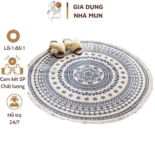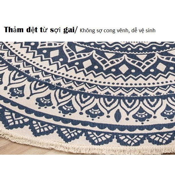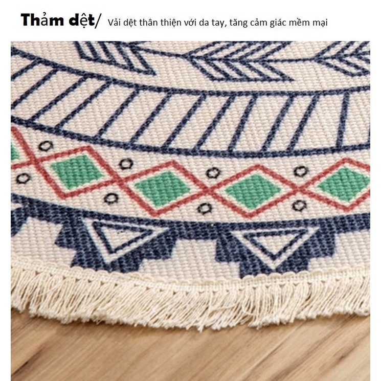 🌈 Thảm Tròn Thổ Cẩm được dệt từ sợi cotton và lanh bền chắc, chất lượng cao, thảm dày dặn lót sàn chống trơn trượt.