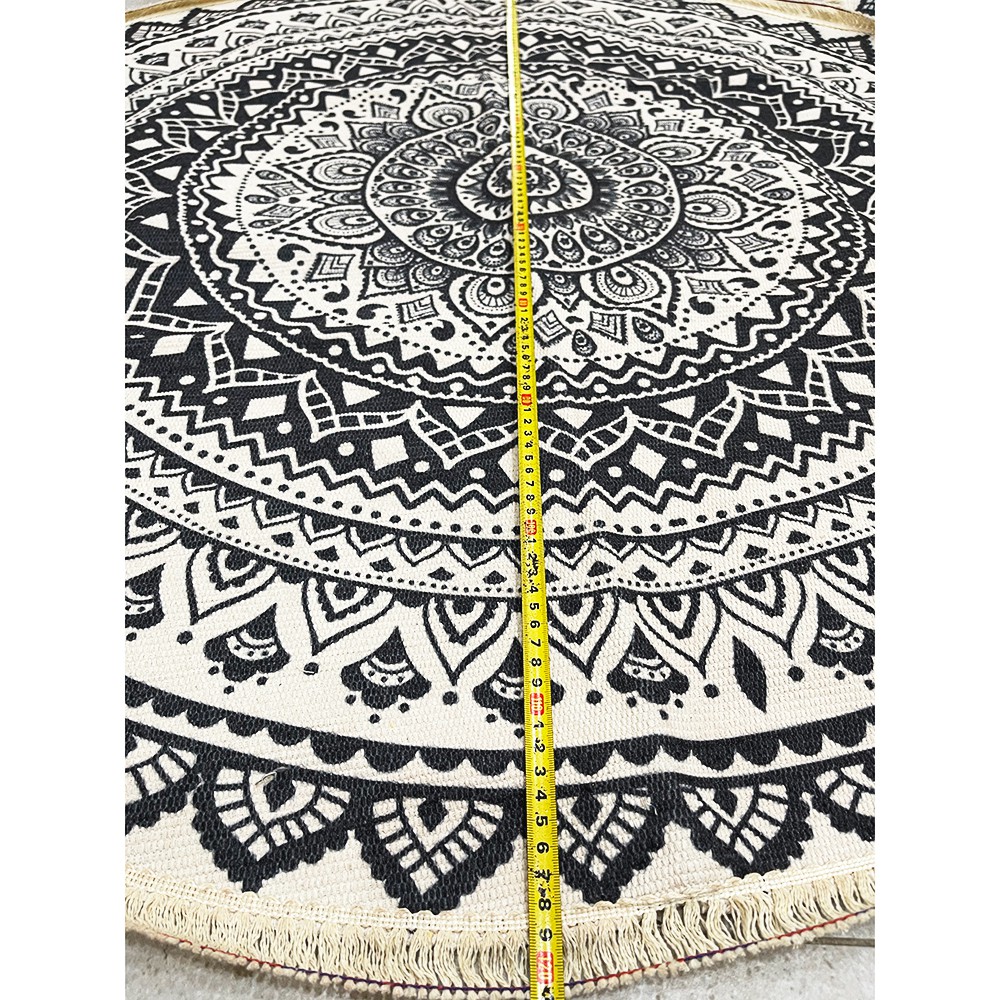 Thảm tròn tua rua đk 120cm chất cotton in hoa văn phong cách Vintage
