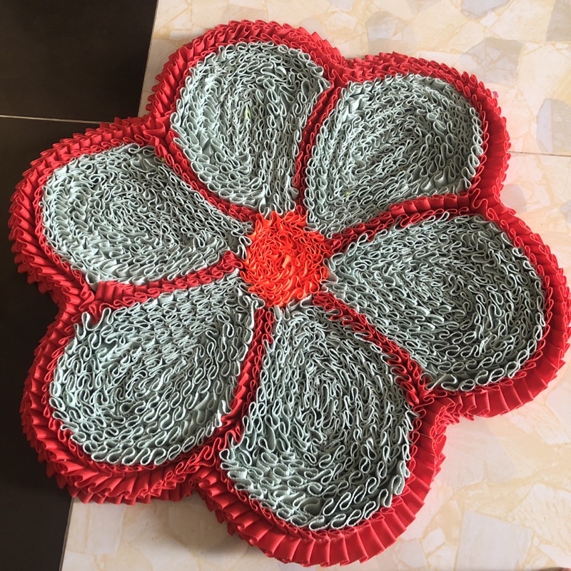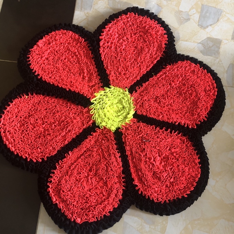Thảm lau chân hình bông hoa 6 cánh kích thước lớn nhất 50cm.Thảm có thể giặt bằng máy giặt