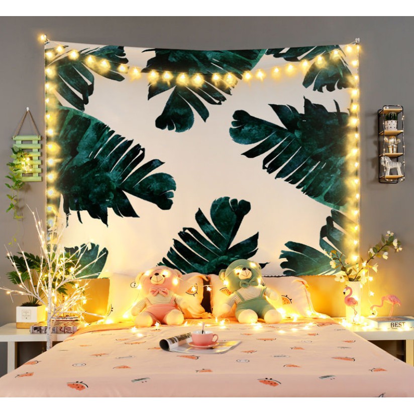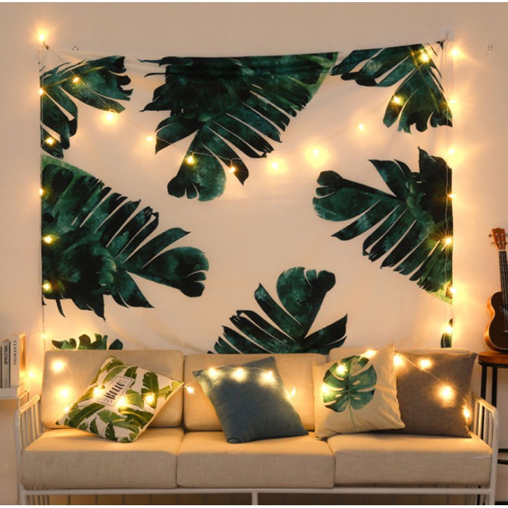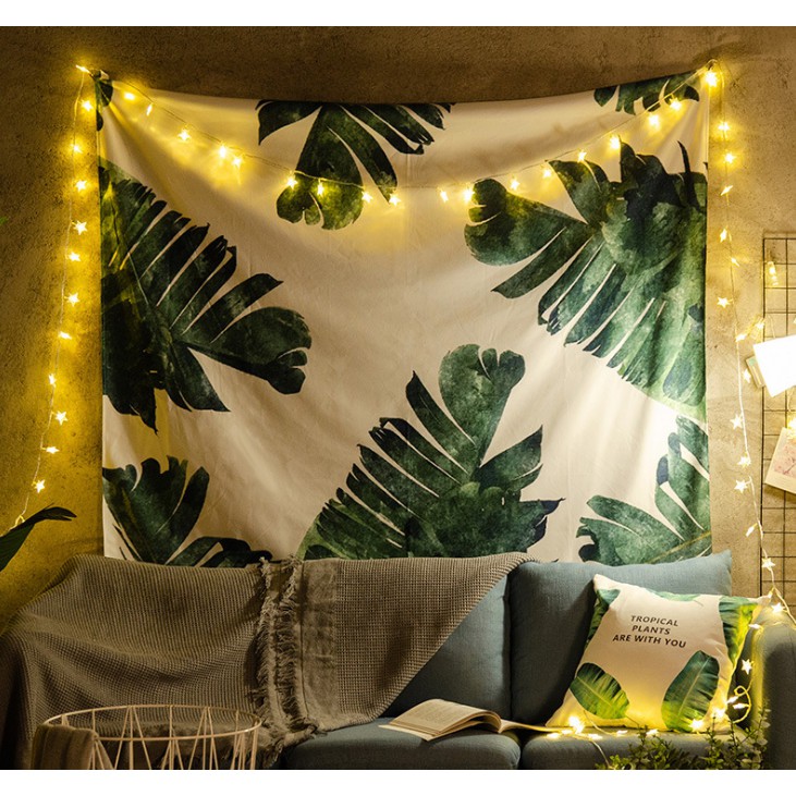 Thảm vải - Tranh vải trang trí đa năng hình lá cọ, decor phòng tạo cảm giác mát mẻ mới lạ +Tặng kèm móc treo và đèn nháy