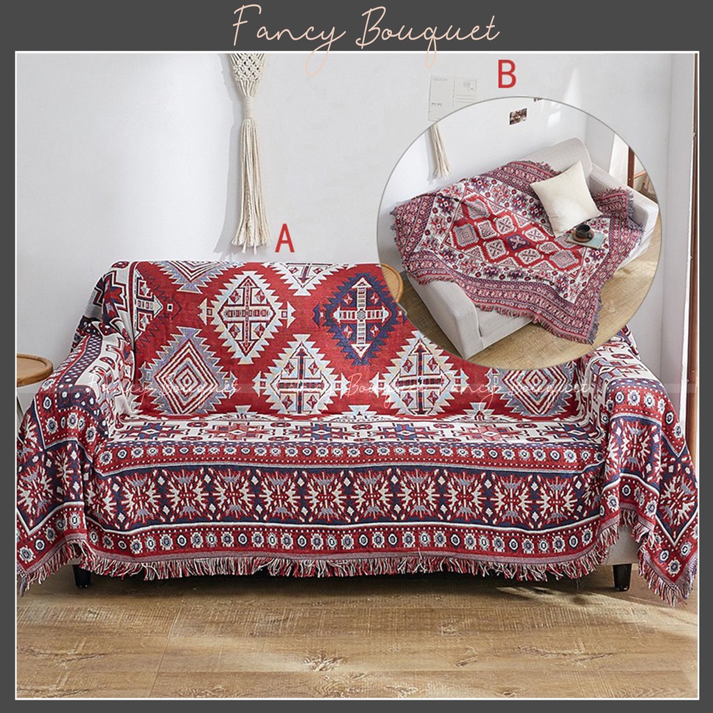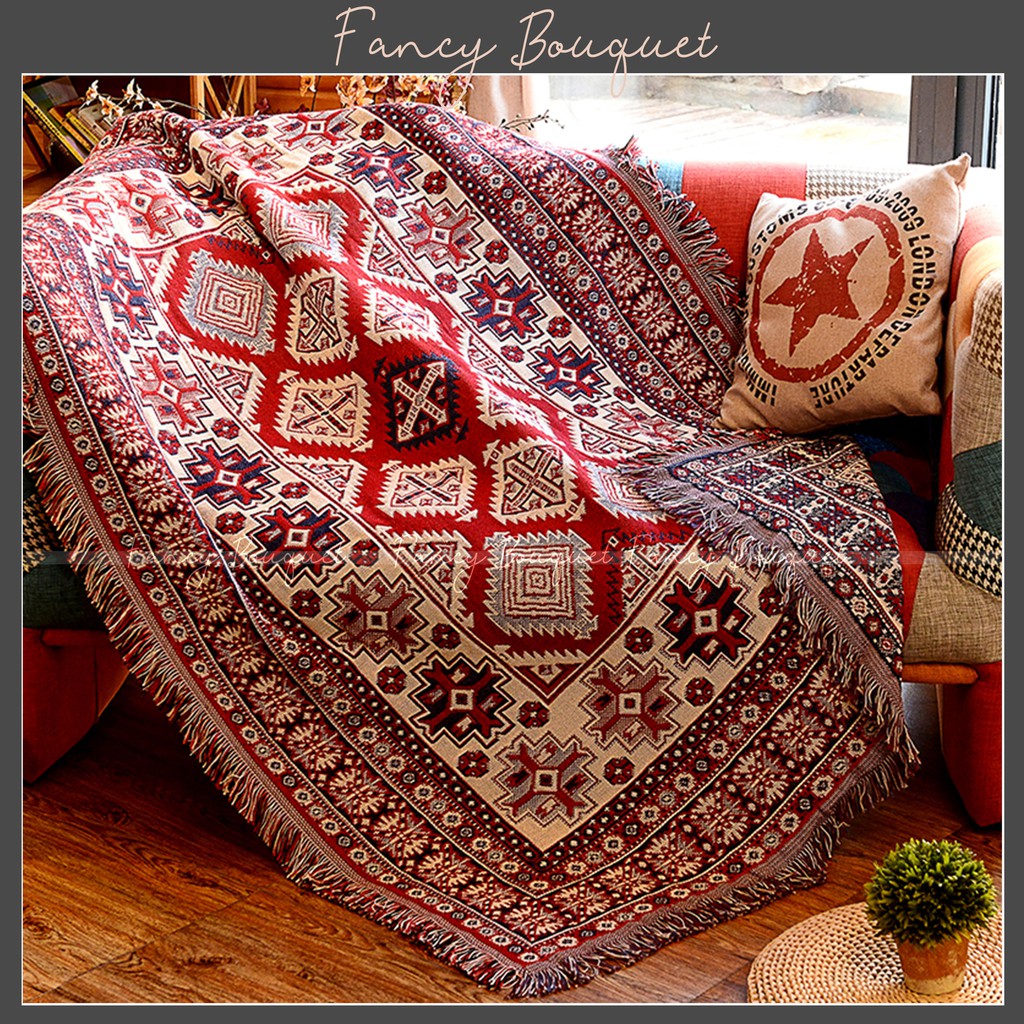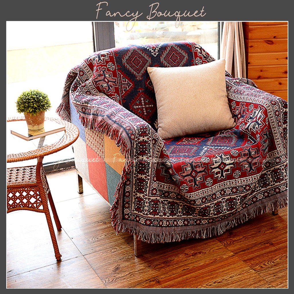 Nhà cửa & Đời sống > Trang trí nhà cửa > Vỏ bọc nội thất || Thảm vintage phủ sofa họa tiết hình học ❤️FREESHIP❤️ Vải dệt 100% cotton hai mặt 2 màu Decor VintageCòn hàng