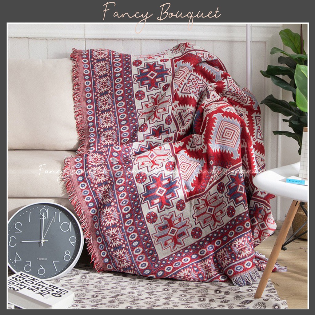 Thảm vintage phủ sofa họa tiết hình học ❤️FREESHIP❤️ Vải dệt 100% cotton hai mặt 2 màu Decor Vintage