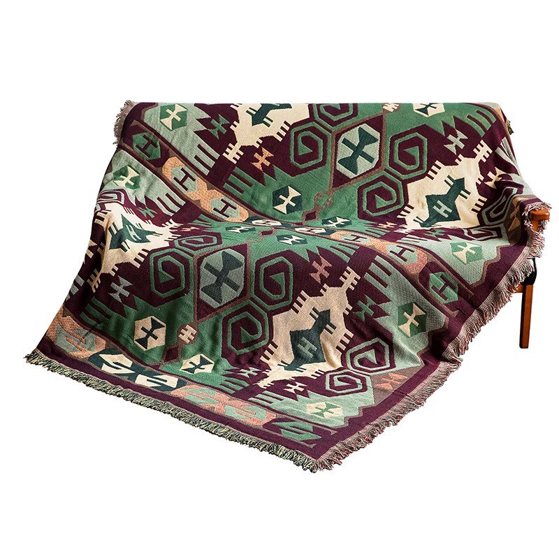 Thảm xanh họa tiết thổ cẩm sử dụng được hai mặt kích thước 130x180cm,180x230cm