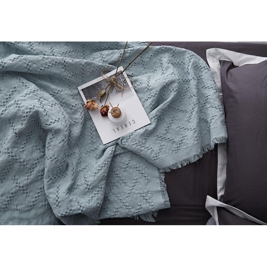 Thảm Xanh Navy Thêu Hoa Tua Rua, Picnic, Chụp Hình Vintage, Decor - Vintage