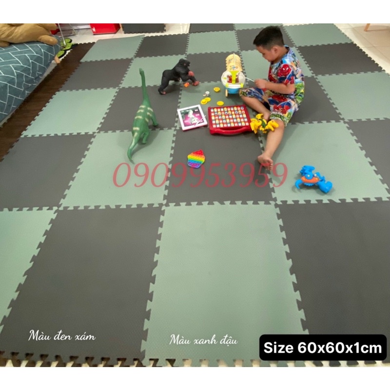 Thảm xốp 60×60×1cm màu xanh đậu và đen xám