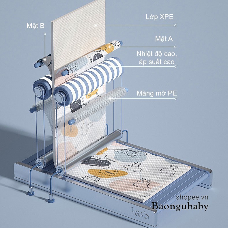 + Chất liệu XPE, 2 mặt silicon không mùi. An toàn tuyệt đối.