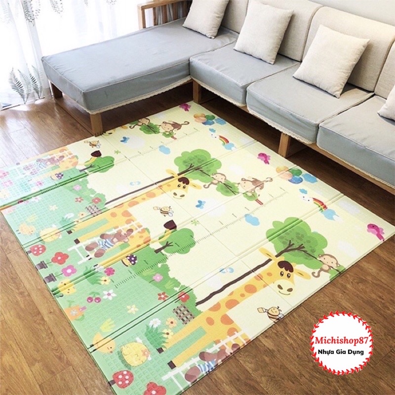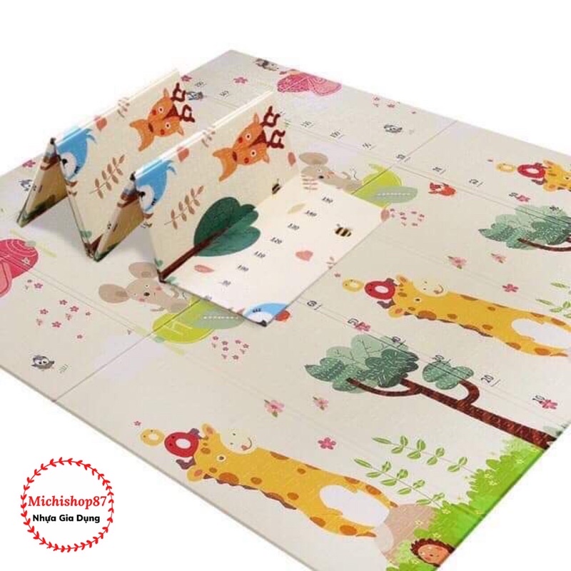 Giới thiệu Thảm Xốp Gấp Gọn 2 Mặt Có Vân Chống Trượt Cho Bé An Toàn 1M8 x 2M, Chiếu Xốp Phủ Silicon Chống Thấm Chống Trơn Cho Bé
