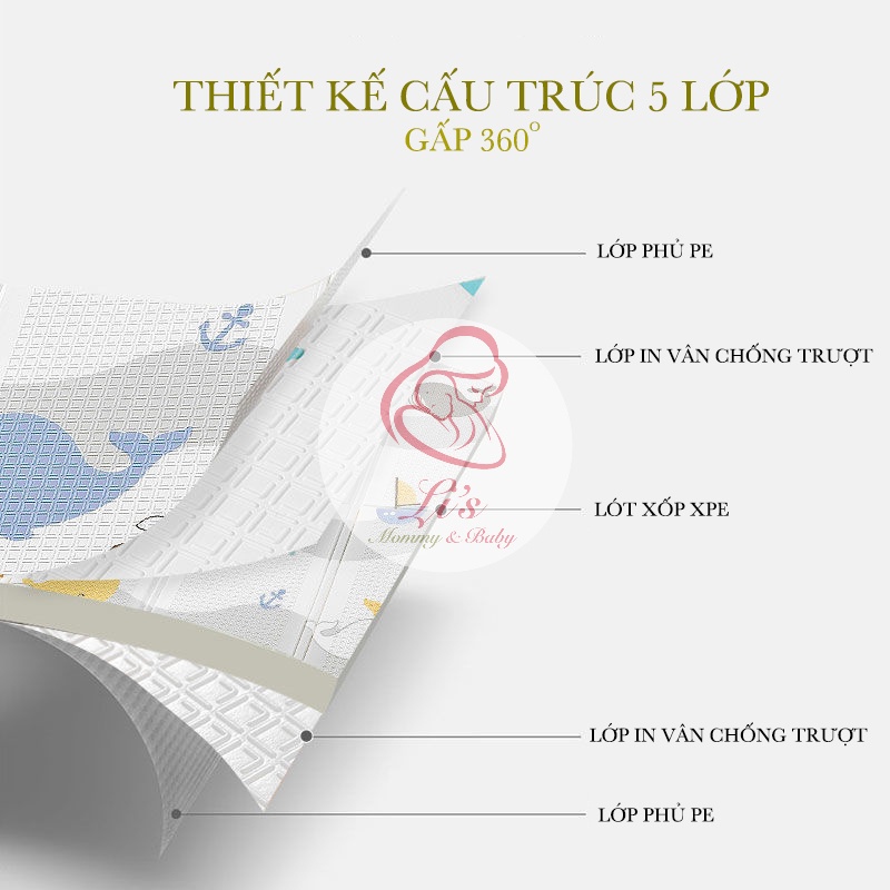 Thảm xốp gấp gọn loại dày 1m8 x 2m cho bé kiểu Hàn Quốc Mã TXPE112-Tên Sản phẩm: Thảm Xốp XPE - Chiếu Xốp Cho Bé - Tấm Lót Trải Sàn 2 Mặt Phủ Silicon Chống Thấm, Chống Trơn Trượt 1M8x2M