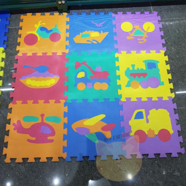 Mỗi miếng xốp tương ứng với 1 phương tiện giao thông như: tàu thủy, máy bay….và màu sắc khác nhau cho các bé vừa chơi vừa học.